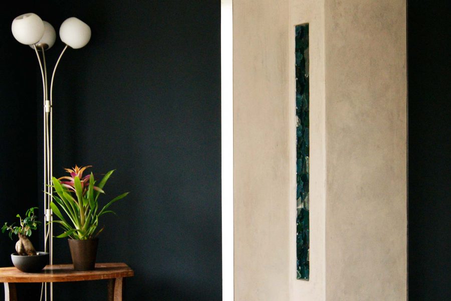 Anaïs proposes a declination of mobile architectural elements made of lime coating and mosaic. These volumes, inspired by the aesthetics and functionality of the architectural elements, reveal the work on surfaces and motif in a dialogue with the environment welcoming them. The wall decoration then becomes a structural element of space. The sweeping of the light animates surfaces, revealing the transparency, opalescence, and colors of the various textures.
