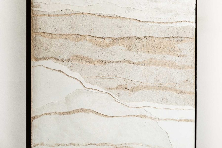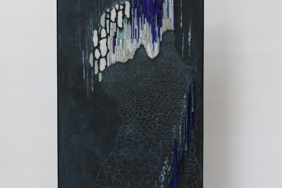 Lines inspired by the object on the wall split the space and spread a singular character in the environment by compositions of unique materials. In a sculptural point of view, these pieces animated by the sweeping of the light in order to reveal the artist’s reinvented and reinterpreted work of mosaic.