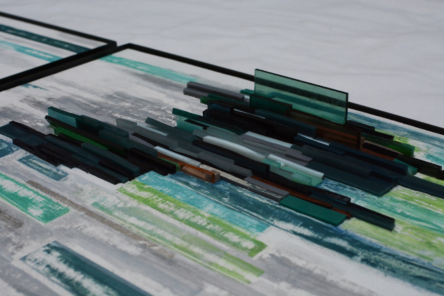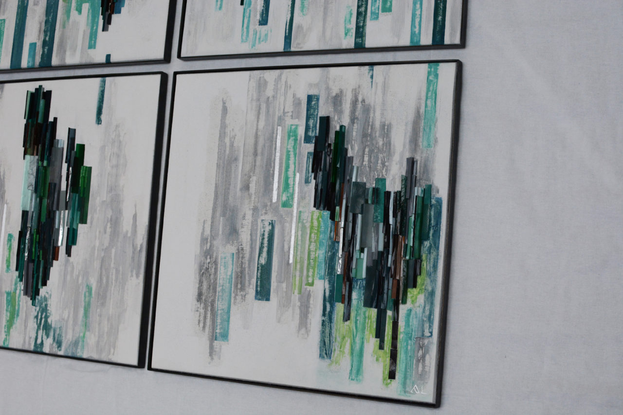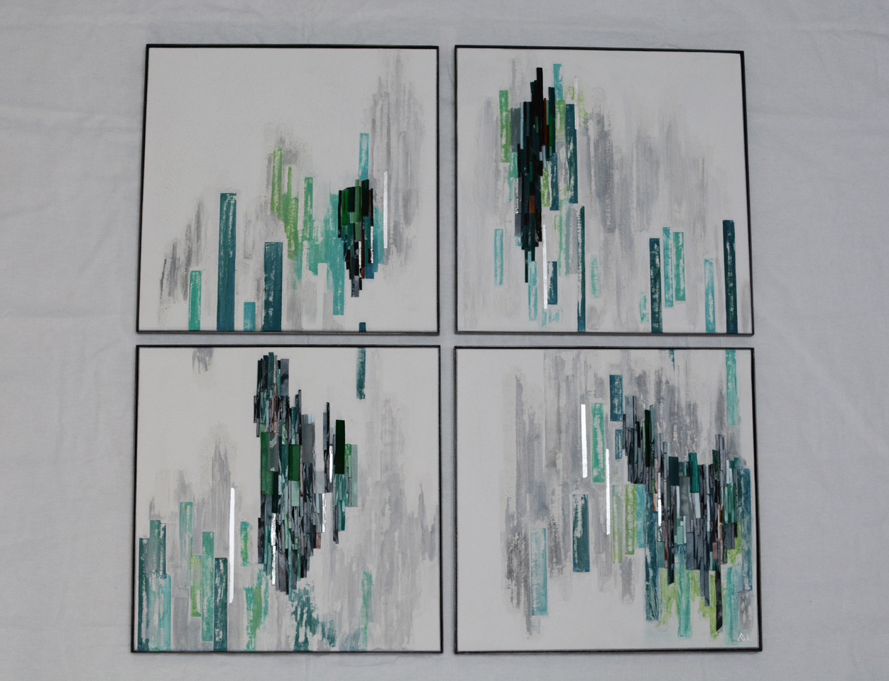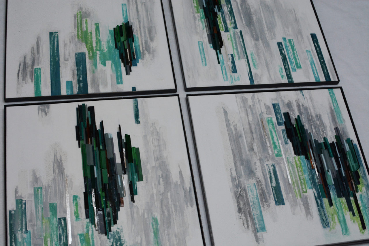 Panneau Pâte de verre, enduits à la chaux, argent, acier 49.2 /49.2 cm*4 2019
