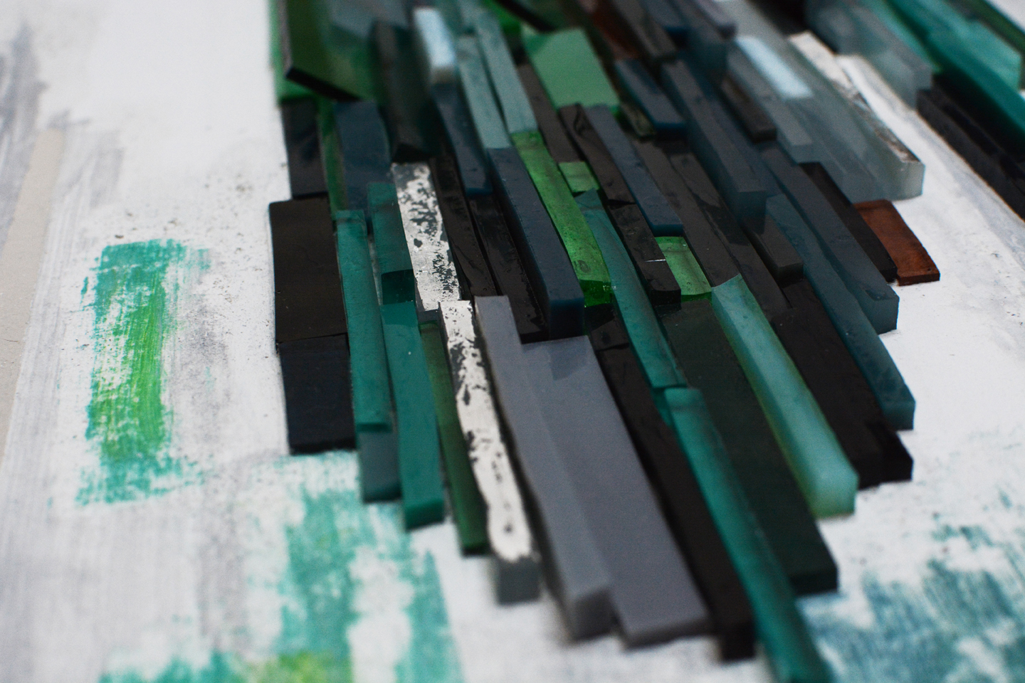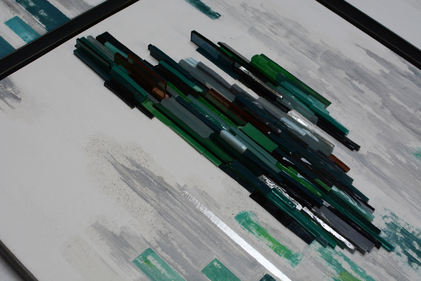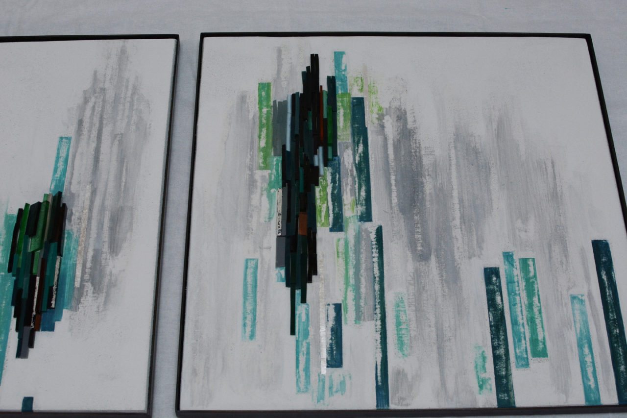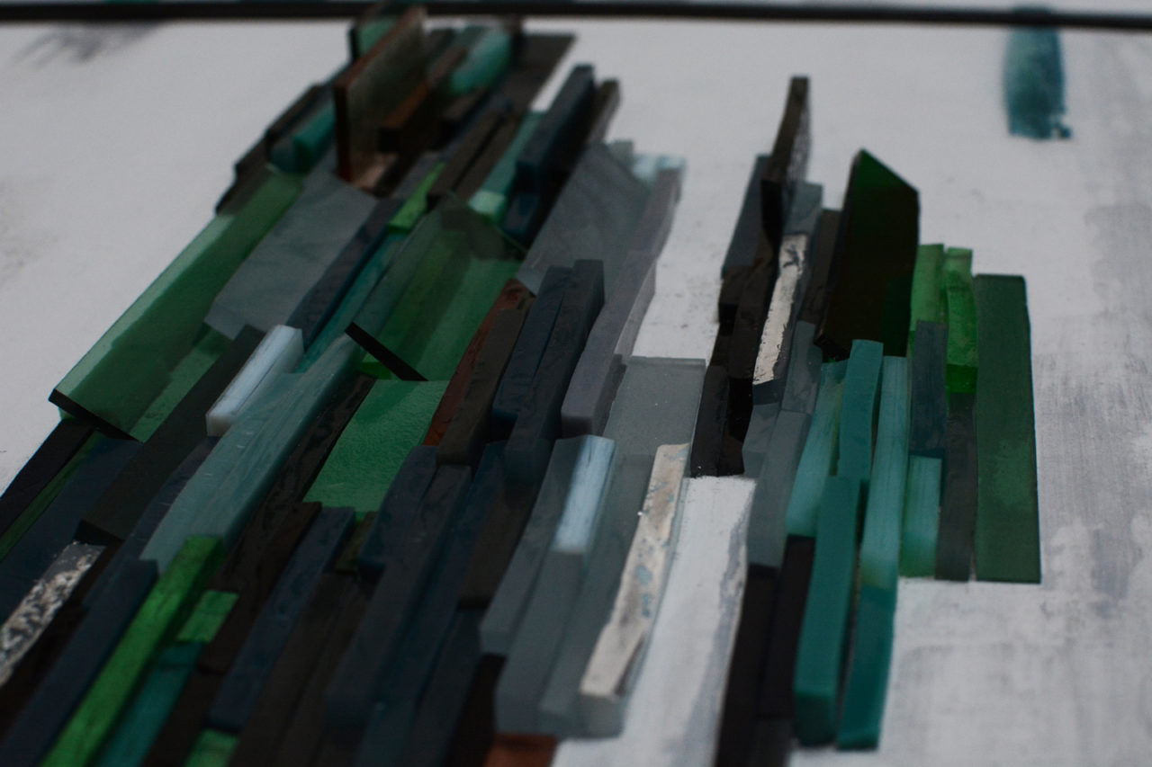 Panneau Pâte de verre, enduits à la chaux, argent, acier 49.2 /49.2 cm*4 2019